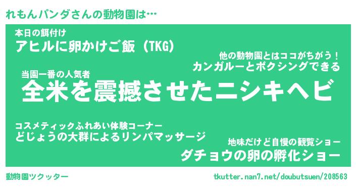 | 料理風あだ名 | 『ネギたっぷりれもんパンダの南蛮漬け』 |