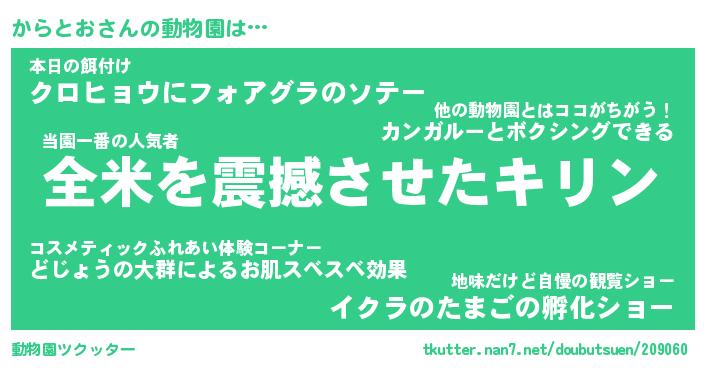 | 2回繰り返すあだ名 | 『からから』『かからら』『のろのろ』 |