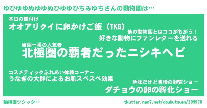 | 料理風あだ名 | 『節約★ゆひゆゆぬゆゆぬひゆゆひちみゆちと油揚げの玉子丼』 |