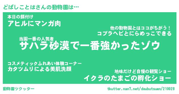| 2回繰り返すあだ名 | 『どばどば』『どどばば』『うろうろ』 |