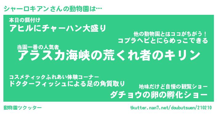 | 2回繰り返すあだ名 | 『シャシャ』『シシャャ』『おたおた』 |