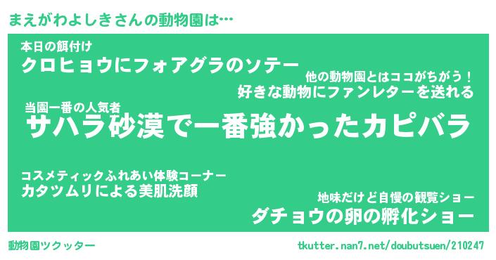 | 2回繰り返すあだ名 | 『まえまえ』『ままええ』『あんあん』 |
