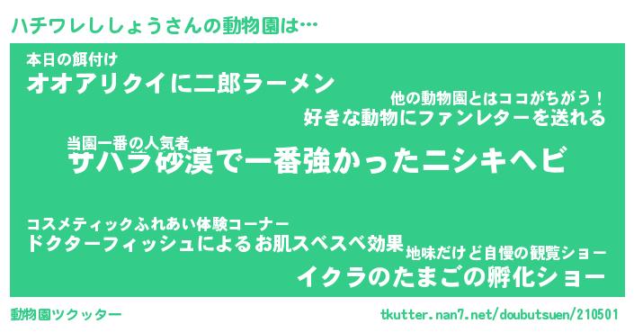 | 胡散臭い通販商品みたいなあだ名 | 『必ず成功するブレスレット…その名も「ハチワレししょう」』 |