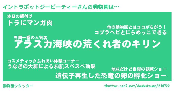 | 料理風あだ名 | 『節約★イントラボットジーピーティーと油揚げの玉子丼』 |