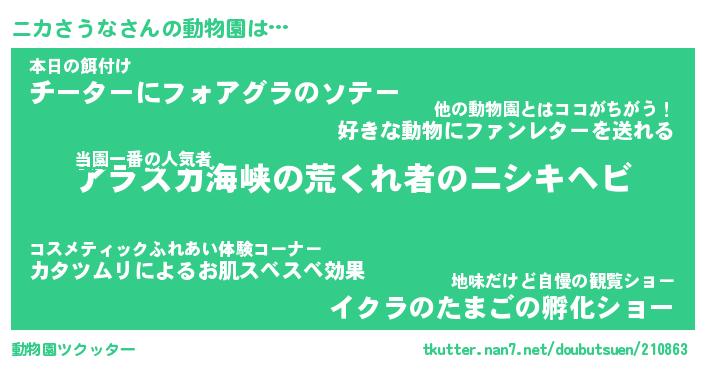| 2回繰り返すあだ名 | 『ニカニカ』『ニニカカ』『ねばねば』 |