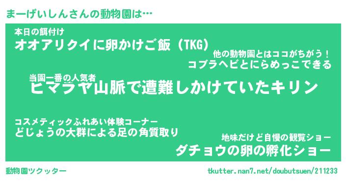 | 料理風あだ名 | 『節約★まーげいしんと油揚げの玉子丼』 |