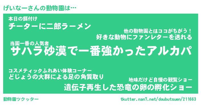 | 2回繰り返すあだ名 | 『げいげい』『げげいい』『くねくね』 |