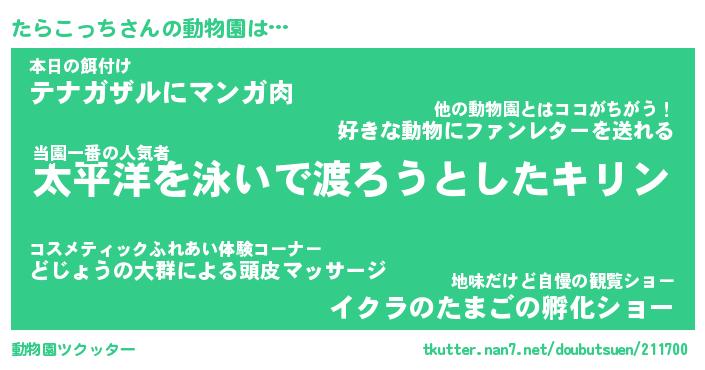 | 2回繰り返すあだ名 | 『たらたら』『たたらら』『うずうず』 |