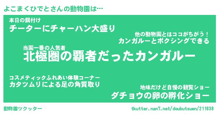 | 2回繰り返すあだ名 | 『よこよこ』『よよここ』『ぬるぬる』 |