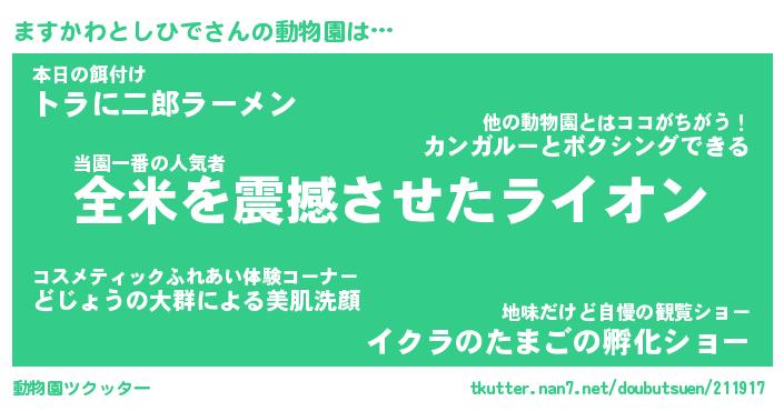 | 胡散臭い通販商品みたいなあだ名 | 『億万長者になれるブレスレット…その名も「ますかわとしひで」』 |