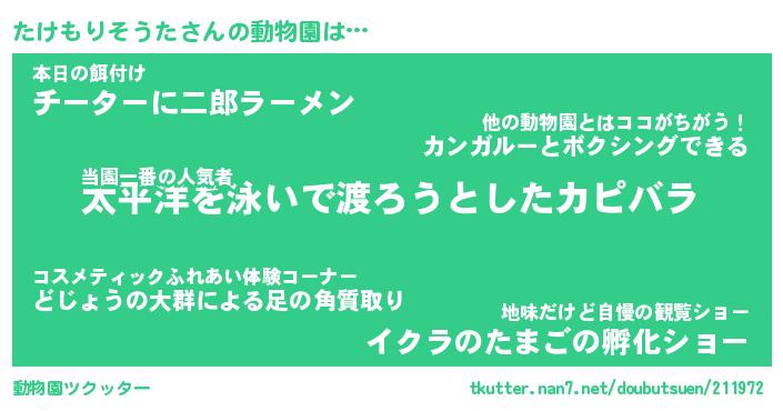| 2回繰り返すあだ名 | 『たけたけ』『たたけけ』『うるうる』 |