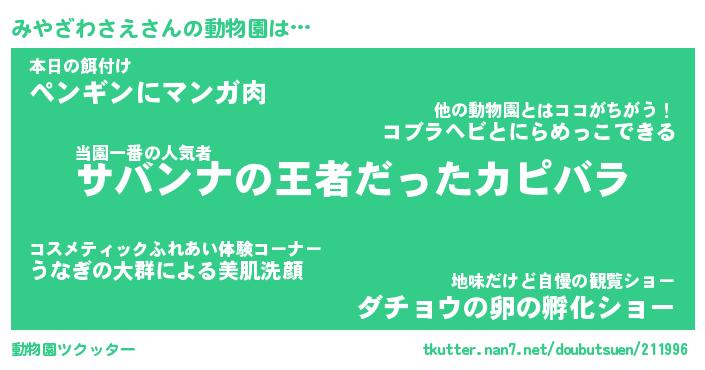 | 2回繰り返すあだ名 | 『みやみや』『みみやや』『にたにた』 |