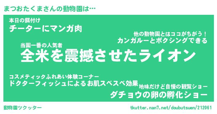 | 胡散臭い通販商品みたいなあだ名 | 『億万長者になれるブレスレット…その名も「まつおたくま」』 |