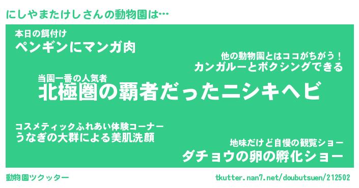 | 2回繰り返すあだ名 | 『にしにし』『ににしし』『ぐねぐね』 |