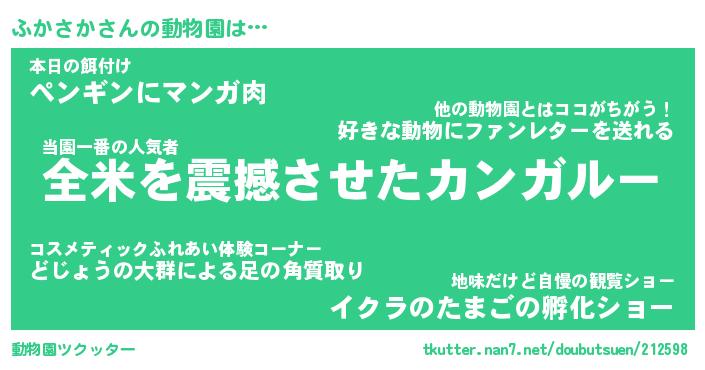 | 2回繰り返すあだ名 | 『ふかふか』『ふふかか』『ぶらぶら』 |