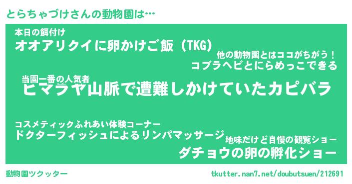 | ツイッター | とらちゃづけさんのツイッターID『dendenmushi_nyan』 |