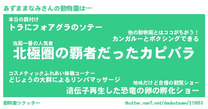 | 2回繰り返すあだ名 | 『あずあず』『ああずず』『にたにた』 |