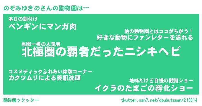 | 2回繰り返すあだ名 | 『のぞのぞ』『ののぞぞ』『うねうね』 |