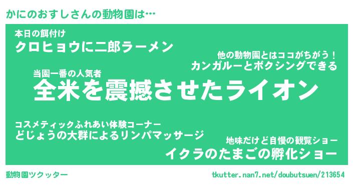 | 2回繰り返すあだ名 | 『かにかに』『かかにに』『うねうね』 |