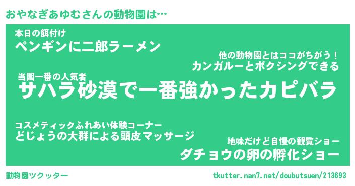 | 胡散臭い通販商品みたいなあだ名 | 『必ず成功する霊験あらたかなお札…その名も「おやなぎあゆむ」』 |