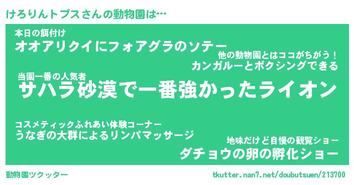 | 2回繰り返すあだ名 | 『けろけろ』『けけろろ』『うずうず』 |