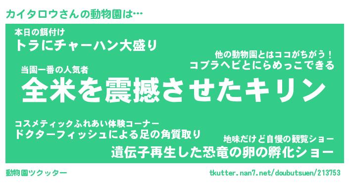 | ツイッター | カイタロウさんのツイッターID『namakemono_kun』 |