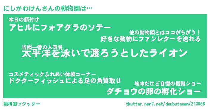 | 2回繰り返すあだ名 | 『にしにし』『ににしし』『ぬめぬめ』 |