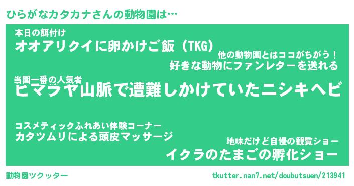 | 料理風あだ名 | 『節約★ひらがなカタカナと油揚げの玉子丼』 |