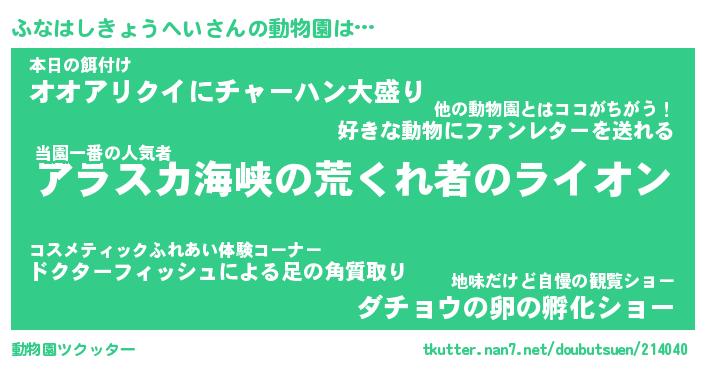 | 2回繰り返すあだ名 | 『ふなふな』『ふふなな』『うろうろ』 |