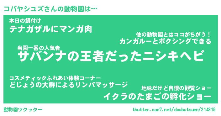 | 2回繰り返すあだ名 | 『コバコバ』『ココババ』『うずうず』 |