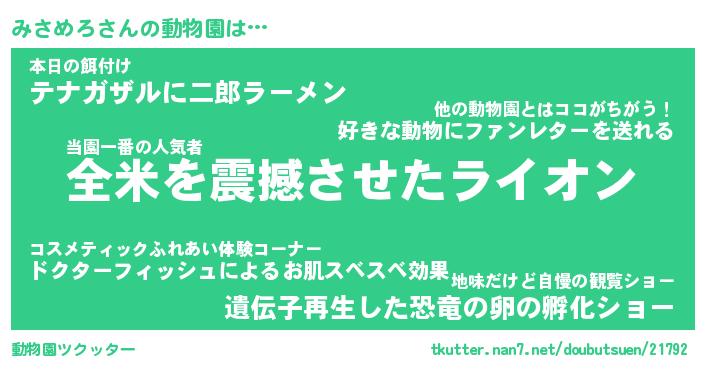 | ツイッター | みさめろさんのツイッターID『namakemono_star』 |