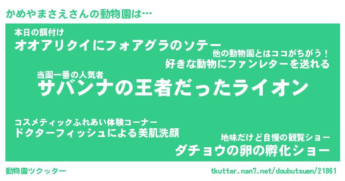 | 2回繰り返すあだ名 | 『かめかめ』『かかめめ』『にたにた』 |