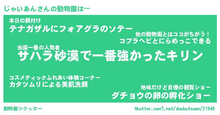 | 男性向けラノベタイトル風あだ名 | 『じゃいあんの憂鬱』 |