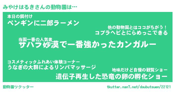 | 2回繰り返すあだ名 | 『みやみや』『みみやや』『いらいら』 |