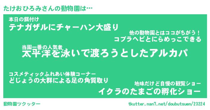 | 2回繰り返すあだ名 | 『たけたけ』『たたけけ』『いらいら』 |