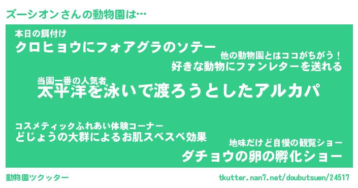 | 男性向けラノベタイトル風あだ名 | 『ズーシオンアートオンライン』 |