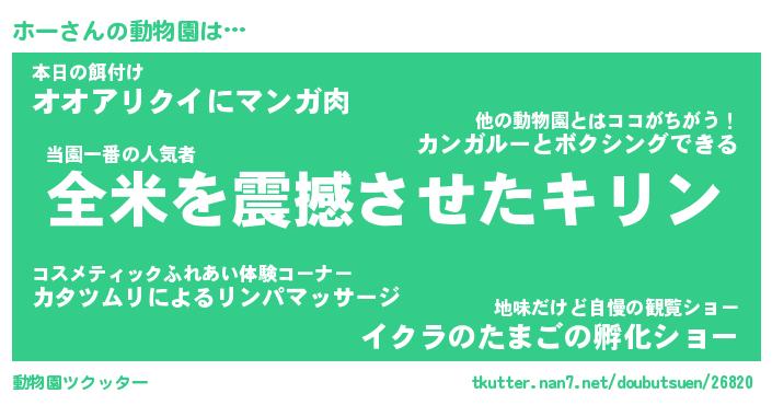 | 2回繰り返すあだ名 | 『ホーホー』『ホホーー』『ぬれぬれ』 |