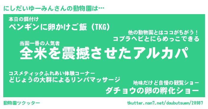 | 2回繰り返すあだ名 | 『にしにし』『ににしし』『ねばねば』 |