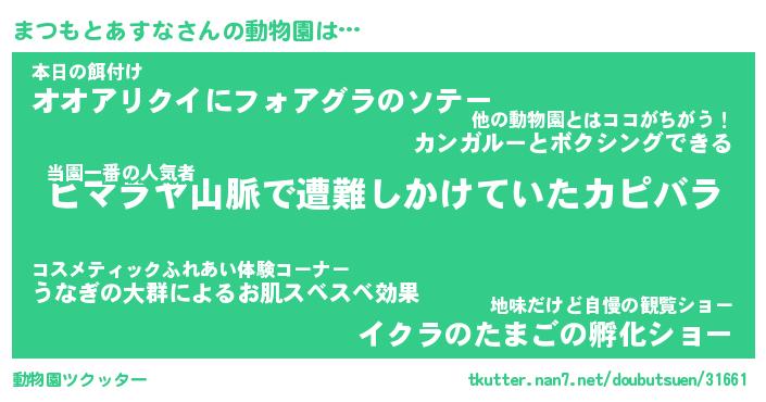 | 2回繰り返すあだ名 | 『まつまつ』『ままつつ』『うろうろ』 |