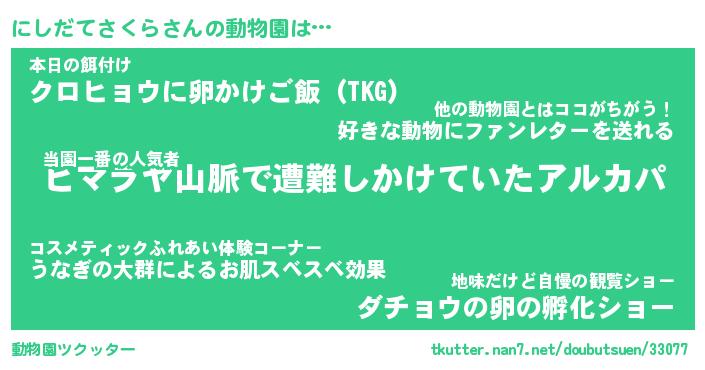 | 2回繰り返すあだ名 | 『にしにし』『ににしし』『うずうず』 |