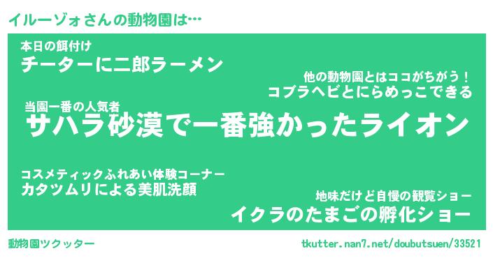 | 2回繰り返すあだ名 | 『イルイル』『イイルル』『ぬらぬら』 |
