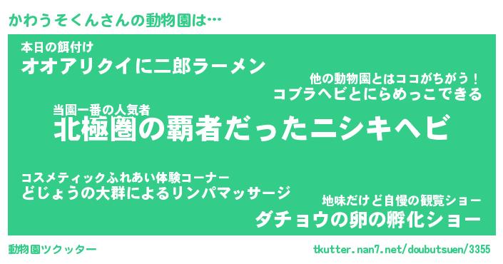 | 2回繰り返すあだ名 | 『かわかわ』『かかわわ』『ぬらぬら』 |