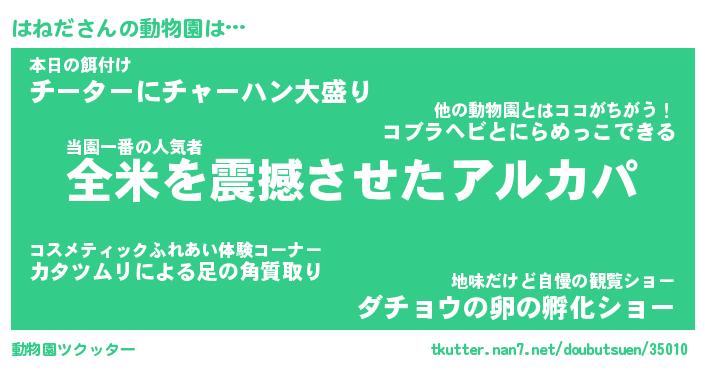 | 2回繰り返すあだ名 | 『はねはね』『ははねね』『おやおや』 |