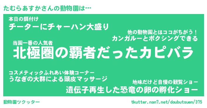 | 2回繰り返すあだ名 | 『たむたむ』『たたむむ』『ぬめぬめ』 |