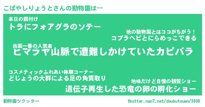 | 2回繰り返すあだ名 | 『こばこば』『ここばば』『あんあん』 |