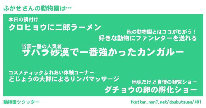 | 2回繰り返すあだ名 | 『ふかふか』『ふふかか』『きしきし』 |