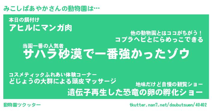| 2回繰り返すあだ名 | 『みこみこ』『みみここ』『のろのろ』 |