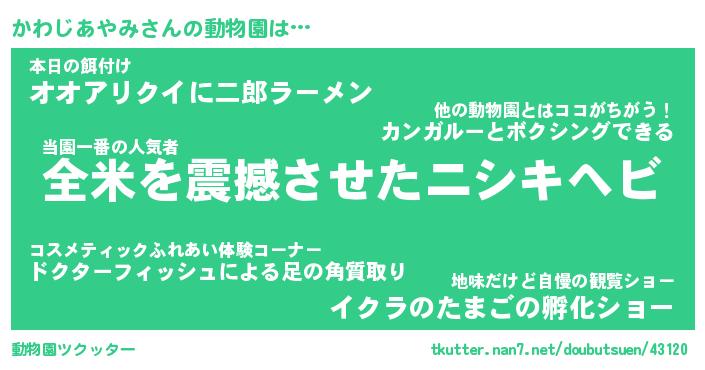 | 2回繰り返すあだ名 | 『かわかわ』『かかわわ』『うろうろ』 |