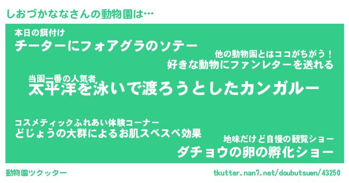 | 2回繰り返すあだ名 | 『しおしお』『ししおお』『ぷかぷか』 |