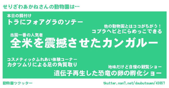 | 胡散臭い通販商品みたいなあだ名 | 『億万長者になれるブレスレット…その名も「せりざわあかね」』 |